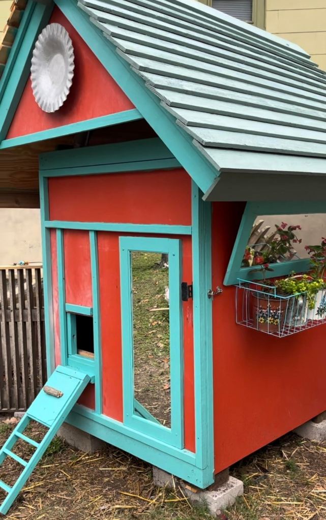 I designed the Hen House from a Bird House I collected and my Husband Built it.
