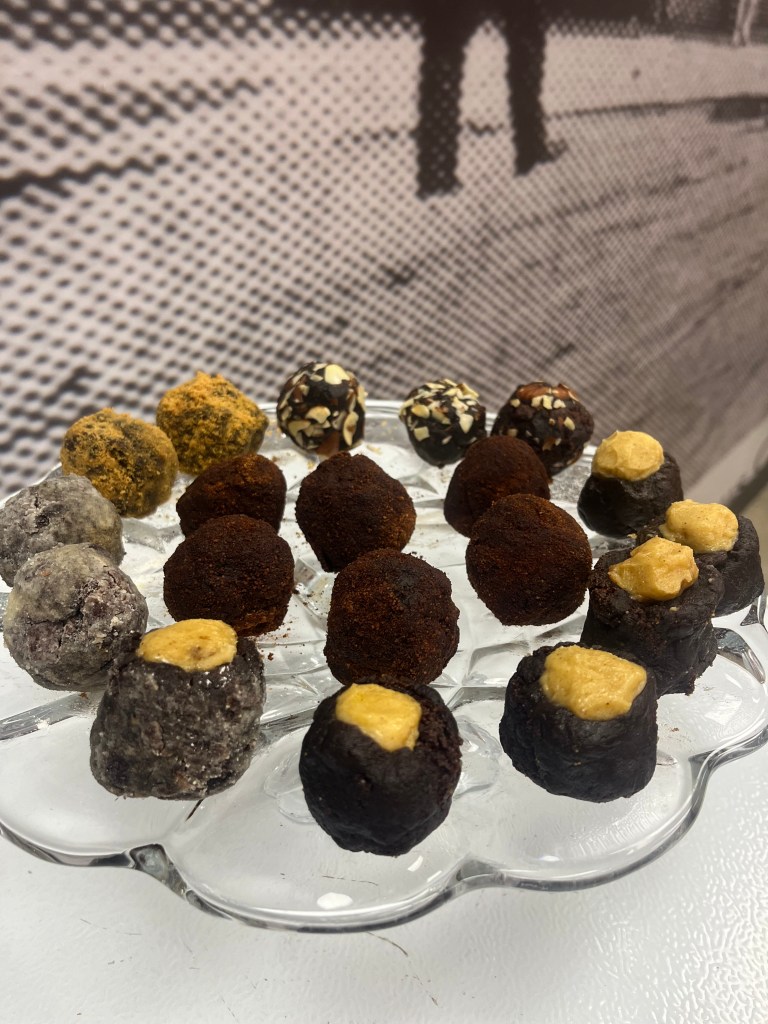 I love my kitchen time; it’s my escape, my Zen Time! However, Pro-Tip, when changing the cake ingredients to a GF version, the cake may not rise. I tried this in a recent class I offered at Natural Grocers in Corpus Christi, Texas. Even though I walked through the steps to ensure the cake would rise, it just might not, so when life hands you lemons, you make cake balls. And that is what I did with my delicious cake that rose not; I stirred it up, formed balls, and made each one unique; they were still tasty, but just keep that in mind.